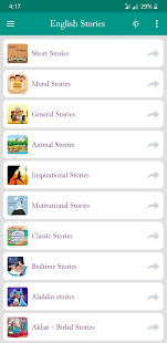 The best short stories should haunt you for days and weeks. this app contain various stories categories like humor, comedy, ancient stories, folktales stories, Moral Stories, Tenali Ramakrishna, Akbar Birbal Stories, Aladdin (Magic Lamp), The Arabian Nights, Inspirational Stories, Bedtime Stories, Motivational stories Comical Stories, Educational Stories, Fables Stories, Diligence Stories, Family Stories, Life Stories, Love Stories, Animal Stories, Panchatantra Stories, Short Stories, Courage Stories, General Stories, Classic Stories and Other Stories.