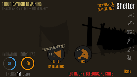 「サバイブ」は、娯楽のみを目的としたシミュレーションゲームです。これは、荒野のサバイバルのコースではありません。専門家または専門家の指示なしに、これらの措置を試みないでください。