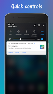 Ambienceには、スリープ状態になった場合に再生が自動的に停止するように設定できるタイマーがあります。また、戻る、タイマーの設定、再生の停止、またはアプリをすばやく閉じるためのコントロールを備えた再生通知があります。