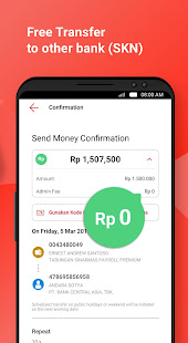 Get FREE transfer to other banks via national clearing system (Sistem Kliring Nasional). You can also use the other intra bank or inter bank transfer services (RTGS, and ATM network / RTOL), as well as the same foreign currency transfer.