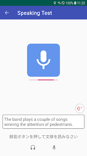 テスト段階でリスニングテストとスピーキングテストをします。リスニングテストは動画の音を聞きながら、順に単語を選択して文章を完成させるテストです。スピーキングテストはユーザーが文章を声に出して言うことで、音声認識機能を利用して発音を評価するテストです。