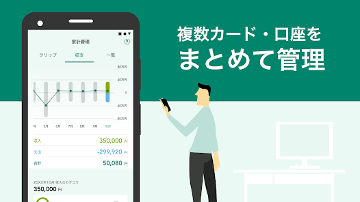 複数のアプリを立ち上げることなく、このアプリ1つで、日常のお金の情報をまとめて管理することができます。