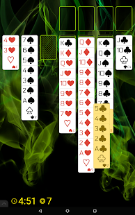 Within the Tableau you can build face-up descending sequences regardless of suit, but only in-suit sequences can be moved. Put any card to an empty column.