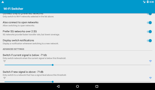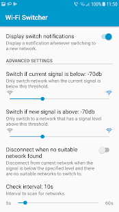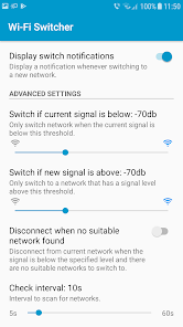 The app constantly monitors Wi-Fi network levels and intelligently switches to a better network whenever the current signal becomes too weak.