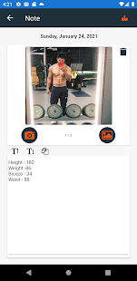 - Save important daily details (weights, height, waist, chest, biceps size, etc)