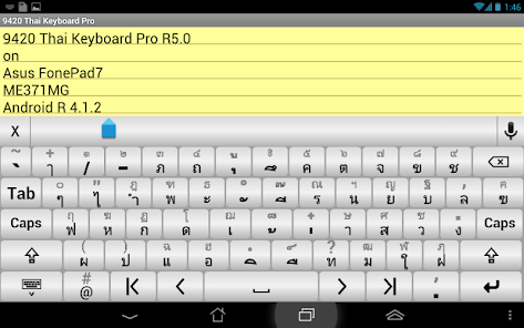 9420 Thai Keyboard for Android is a free Thai/English keyboard software (with built-in "Full" Thai/English word database) that designs for using "finger" and optimizes for text-hungry apps like LINE, Twitter, FaceBook.