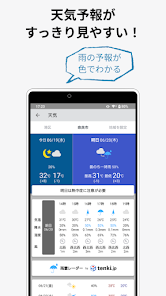 短い文でわかりやすい「ひとこと予報」、天気通知や雨雲レーダーにも対応しています。