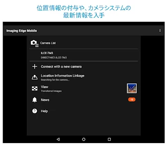 Imaging Edge Mobileは、スマートフォン・タブレットへの静止画・動画の転送やリモート撮影、撮影画像への位置情報の付与ができます。