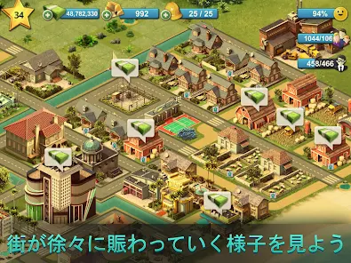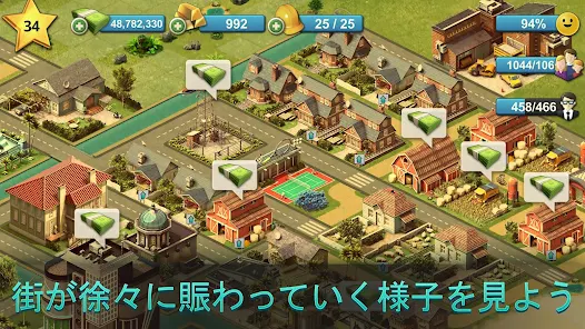 あなたは市長として、建物のメンテナンス、火事、サービスの提供、その他の社会のニーズなど、現実世界と同じ困難を解決して住民を幸せにし、公園やデコレーションを作ったり、道路と交通機関、線路と列車、歩道、運河、波止場、貨物船を提供して、あなたの人気を高めながら、友達と楽しい挑戦クエストを解決して、あなたのコミュニティーを形作って成長させなければなりません。