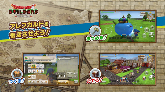 スマートフォン版ならではの新たな機能を駆使して、キミだけの建物や町を作りながら、アレフガルドを復活させよう