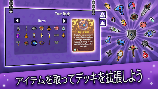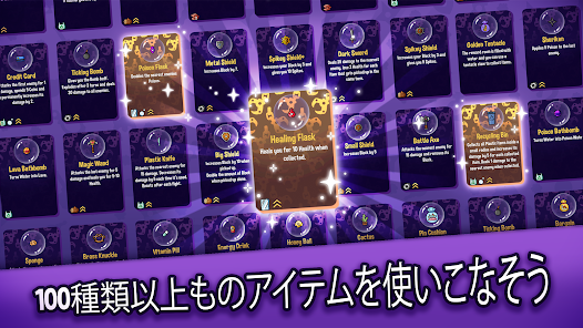 革新的なデッキ構築ストラテジー 強力な武器や防具、アイテム、アクセサリーを集め、強化し、自分だけの最強デッキを構築しよう。無限の組み合わせでダンジョン制覇を目指せ。
