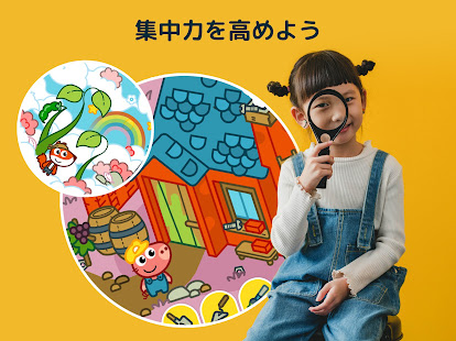 キャラクターやオブジェクトを見つけることができたら、絵に描かれた15の物語を進めていこう。岩の後ろやテーブルの下、あるいは木の中など… 本当にたくさんの隠し場所があるんだ!指を使って探検したり、絵を見つけよう。開いて、持ち上げて、取り除いて… 何も見つけることができなければ、虫メガネを使ってみよう。