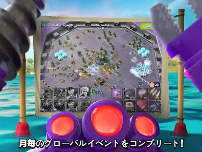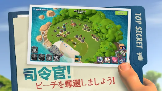 戦略バトルゲーム「ブーム・ビーチ」では邪悪なブラックガード軍団相手に一大総力戦を挑むことになります。派遣部隊を率いて、敵に占領された美しい常夏の島々を解放しましょう。島々の拠点をひとつひとつ奪回し、囚われた島民たちを救出し、未知の群島の全貌を解き明かしましょう。戦いは島々に秘められたいにしえの力をめぐる争奪戦へと発展していきます。いざ、『ブーム・ビーチ』の世界へ