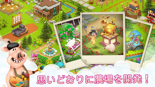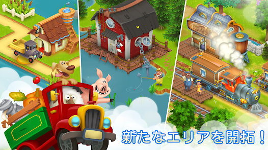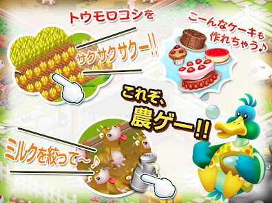 世界一簡単で楽しい農場経営小麦やトウモロコシなどの作物が、収穫の日を待ちわびていますここでは、雨の日なんかなくたって、みんな元気に大きく育ちます収穫したら種をまいて作物を育て、販売する商品を生産しましょう。農場を大きくすれば、ニワトリやブタ、ウシなどの動物も仲間に加わりますエサをあげて、タマゴやベーコン、乳製品などを作ったら、コミュ仲間と交換したり、トラックで配達したりしてコインを入手しましょう。