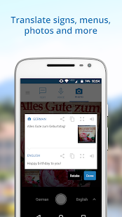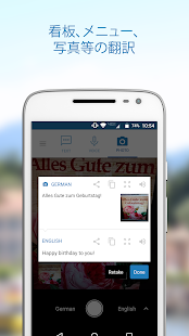 瞬時に、高品質の写真を容易に翻訳します。 携帯電話のカメラを使用すると、看板やメニューの翻訳します。 17か国語で利用可能です。