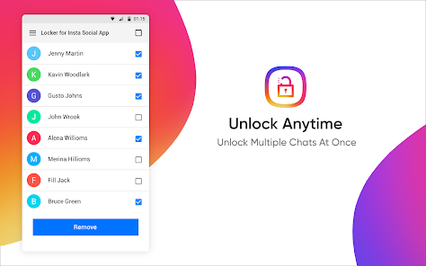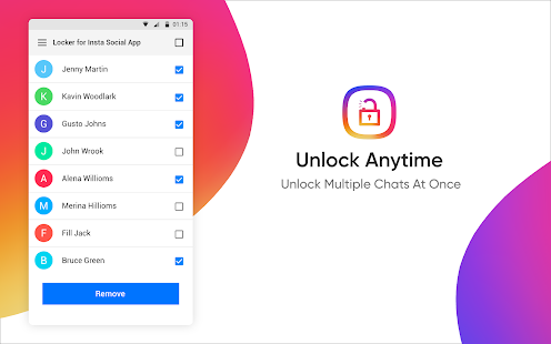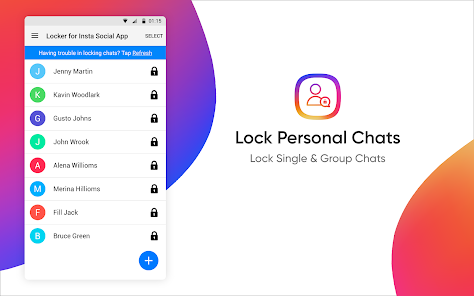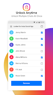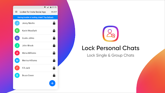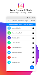 Insta Social App のロッカーは、チャットとアプリ自体の両方をロックできます。この instagram ロッカー アプリの使用は非常に簡単で、Android スマートフォンを数回タップするだけで実行できます。アプリが構成され、チャットがロックされたリストに追加されると、パスコードなしでは誰もチャットにアクセスできなくなります。
