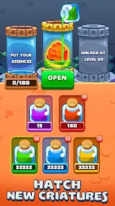 モンスターに餌を与えてレベルアップし、力をアップグレードします。集めて伝説を作り、180 種類のユニークな生き物を発見しましょう。 PVP パズルバトルに最適なモンスターチームを編成し、各モンスターのエレメンタルパワーを使用して、バトルランドアリーナの究極のチャンピオンになりましょう。