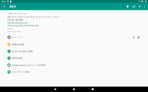 お使いのデバイスの画面上にQRコードとして表示し、それを別のデバイスでスキャンすることで、内蔵のQRコードジェネレータとウェブサイトリンクなどの任意のデータを共有することが可能です。