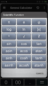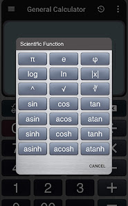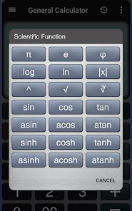 - 関数電卓: 二乗、三角関数および対数関数の計算、平方根、数値の 3 次または n 次、e を使用した計算などの複雑な方程式の問題の処理に適しています。
