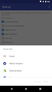 After taking logs, it compresses them into a single zip, and allows you to share or upload them right away - great for helping debug system issues.