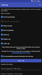 * Last kernel log (last_kmsg, if device supports it)