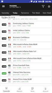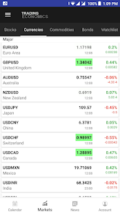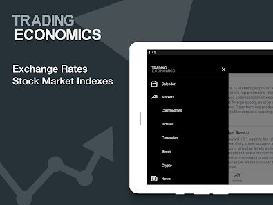 Trading Economicsアプリは、ユーザーに経済カレンダー、為替レート、株式市場インデックス、国債利回り、商品価格を提供します。ユーザーは、リリースされた瞬間に経済指標のアラートを受け取ることもできます。価格目標の設定、価格変更、金融市場の高値/安値アラートの記録。 200か国以上から15億以上のページビューがあり、TradingEconomics.comは世界的なリファレンスです。当社のデータは、サードパーティのデータプロバイダーではなく、公式の情報源に基づいており、事実に矛盾がないか定期的にチェックされます。