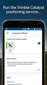 In conjunction with a subscription to the Trimble Catalyst™ GNSS positioning service, use this app to connect to and configure your Catalyst softGNSS receiver, monitor the status of the subscription, and control how GNSS positions are accessed or shared with other location-enabled apps running on your phone or tablet.