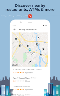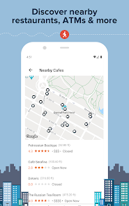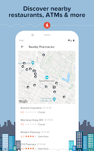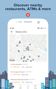 - 一番近くにあるレストラン、駐車場、ATM などを簡単に特定できます。