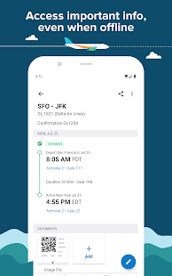 PDF、写真、搭乗券、およびデジタル パスポートの QR コードなどを旅程にアップロードします。これにより、あらゆる情報を 1 つの場所で確認できます。