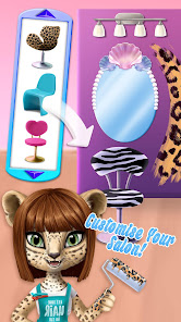 But first, help Amy get ready! She should look flawless in front of her cat clients. Choose a perfect hair updo and dress her up in pretty hairstylist outfits! Don’t forget to decorate the beauty salon! Paint the walls in hot colors, add some fun patterns and style with adorable cat-, bunny- or diamond-shaped mirrors!