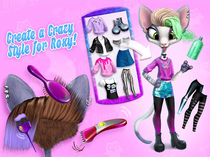 · Choose edgy hairstyles and cool cat clothes for Roxy!
