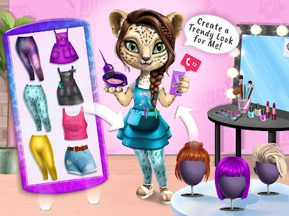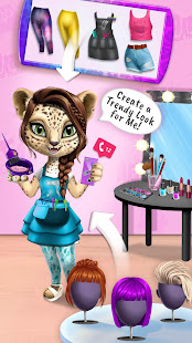 · Choose trendy hairstyles and clothes for leopard Amy!