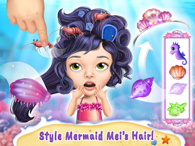 Mermaid Mei lives in The Asian Sea with her friends: a crab and a shark! Little crabby is sad because his home is dirty and full of rubbish from The Land. Let’s help the crab clean up his once beautiful underwater place. The shark is hungry and wants a burger! Prepare the yummiest meal: choose needed ingredients and put them in the right order! Oh no, Mei’s hair is such a mess! Help her make it pretty again and create the most beautiful ocean princess tiara!