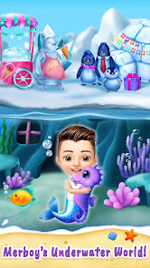Merboy Justin lives in The Cold Sea. It is a bit freezing here, but local creatures are really warm-hearted! Help penguin parents organize a birthday party for their adorable chubby baby! Make a cake and decorate the room with balloons and accessories! Baby penguin is so happy now! Look - a polar bear sells some colorful ice cream! Choose among tons of flavors, toppings and sprinkles! Yummy! Oh no! Justin’s pet seahorse disappeared! Can you help find it in the coral reefs?
