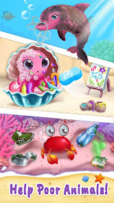 Dive into the magical underwater world and learn about the secret life of cute and friendly mermaids… and a merboy! Explore the ocean and play fun games with adorable dolphins, exotic fish, crabs and other sea creatures! Dress up, style, make food and clean the ocean from nasty rubbish!