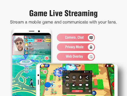 スマホのフロントカメラと内蔵マイクを使って色んなジャンルのゲームをライブ配信できます。