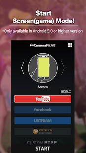 スマホで撮影した内容を配信する「カメラモード」とスマホの画面を配信する「画面モード」の中で選択してライブ配信ができます。