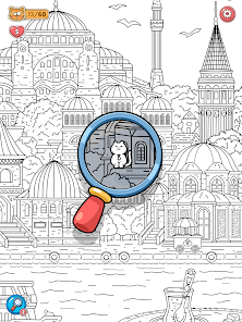 ねこ探しようこそこの楽しいパズルゲームでは、白黒の背景に巧妙に隠された猫を見つけることが目的です。猫をタップして見つけ、目標を達成しましょう。