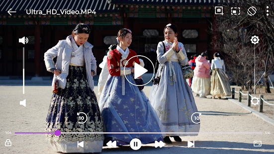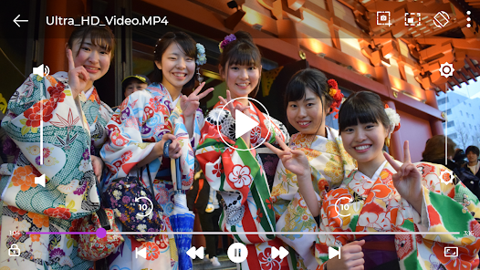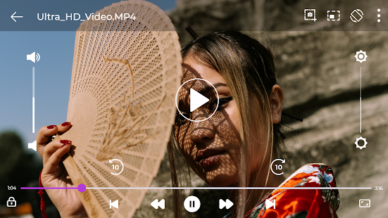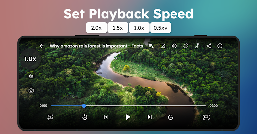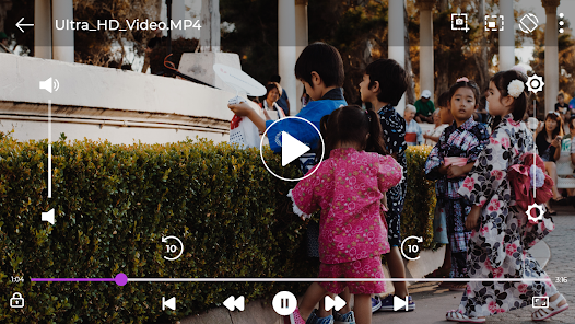 すべてのビデオ フォーマットを再生します。無料のビデオ プレーヤーを使用すると、フル HD ビデオの再生を高度な設定でスロー モーションとファスト モーションで楽しむことができます。ビデオの再生速度を 0.5 から 2.5 に簡単に変更できます。再生したものを簡単にズームインおよびズームアウトできます。 アンドロイド 用の Mp4 プレーヤーは、25% ~ 500% のズームをサポートします。