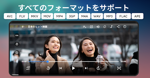 • ビデオプレイヤー MKV、MP4、M4V、AVI、MOV、3GP、FLV、WMV、RMVB、MPG などのすべてのビデオ フォーマットをサポート