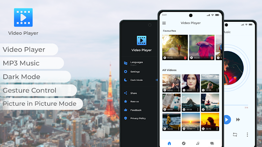 ビデオ プレーヤー アプリ 2022 は、すべてのビデオ フォーマットをサポートし、最大 2k の HD 品質でビデオを再生します。これは、アンドロイド スマートフォンおよび アンドロイド タブレット向けの最高の HD ビデオ プレーヤーのすべてのフォーマット 2022 アプリの 1 つです。画面をダブルタップして、HD MP4プレーヤーを一時停止または再開できます。この HD ムービー プレーヤー アプリでは、複数の言語で字幕を利用できます - ビデオプレイヤー.