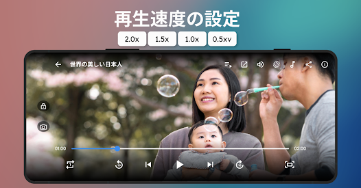 • 再生オプション: 自動回転、アスペクト比、画面ロックなど。