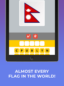 World Flag Quizの遊び方はとてもシンプルです。旗の画像が表示され、スクランブルされた一連の文字が表示され、そこから国名を推測する必要があります。