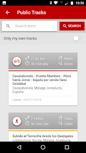 Since the second version of the app we have the "Public Tracks" option: Now we can also publish our tracks, so that any other user can easily view and download our routes. We can also explore and download routes published by other people. Public Tracks contain a classification (type of activity and difficulty), detailed description and pictures optionally. All public tracks can easily be shared with universal links, which will be seen both on the app (if we have it installed) and on the web (otherwise).