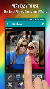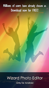Wizard Photo Editor provides the best photo editing tools in one app. Any photo editing action is possible easily: Adjust colors, brightness, saturation, apply hundreds of filters, decorate with text, frames, stickers, overlays and make fantastic collages combinig several pictures, remove red eye, teeth whitening, remove black heads, change eye color, lips, color splash effects, blur focus, lighting dark areas, face blurring (for privacy) ...