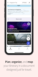 1つのアプリでフライト、ホテル、アトラクションにアクセスします。フライトとホテルの確認メールを転送して旅行プランに直接インポートするか、Gmailに接続して自動的に追加します。高レベルの計画を維持したいですか?食べたい「やること」や「レストラン」などの一般的なリストを作成します。タイトなスケジュールで旅行し、詳細な旅程を作成したいですか?開始(および終了)時間を追加して1日を整理します。これは、チケットや予約を追跡するのに最適です。