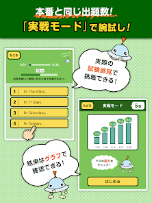 実戦モードでは、実際の英語検定と同じ問題数で出題されます。