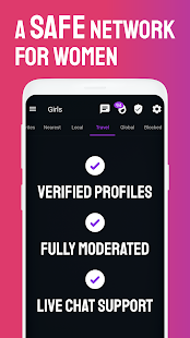 We've worked hard to build a genuine and safe network for women, and we're determined to keep it that way. If you have any questions or concerns - we’re here for you. Just use our in-app live chat for support.