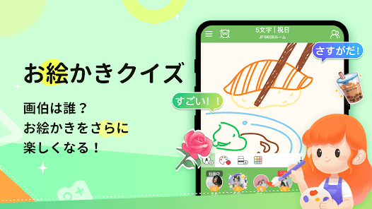 お絵描きクイズクリエイティブな絵で友達を挑発限られた時間で描かれた絵から答えを当てよう絵心と推理力が試される