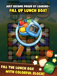 ランチボックスが空ですアップル、スイカ、ブルーベリーなどのかわいいフルーツパズルを爆破して完成させましょう